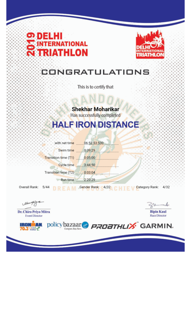 It is a matter of great pride that Mr. Shekhar Moharikar, who is a regular member of Shishukunj Swimming Academy has successfully completed Half Ironman organized in Delhi on February 17th, 2019.